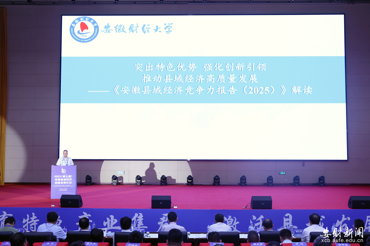 经济学院副院长黄敦平以《突出特色优势 强化创新引领 推动县域经济高质量发展》为题解读了《安徽县域经济竞争力报告2025》。他认为,县域经济发展已进入新阶段,需从单纯资源依赖转向“特色×创新”的乘数效应驱动,要通过企业吸附、平台合作、人脉利用等多种路径,充分发挥市场主导作用,有针对性地开展新技术、新产品研发和引进,找准成果转化主体,建立捕捉寻找机制,构建畅销合作模式,激活县域发展活力。
