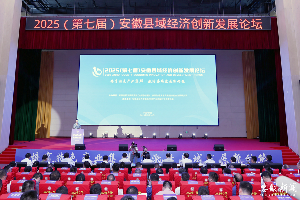 8月16日,2025(第七届)安徽县域经济创新发展论坛在阜阳界首市举办。安徽省政府发展研究中心党组成员、副主任凌宏彬,阜阳市政府党组成员、副市长郑久坤,安徽财经大学党委常委、副校长王兵,安徽财经大学原党委常委、副校长周加来,来自中国社会科学院、上海财经大学、安徽财经大学等专家学者,省市县相关领导,省内外商协会会长、秘书长和企业家代表等参加会议。